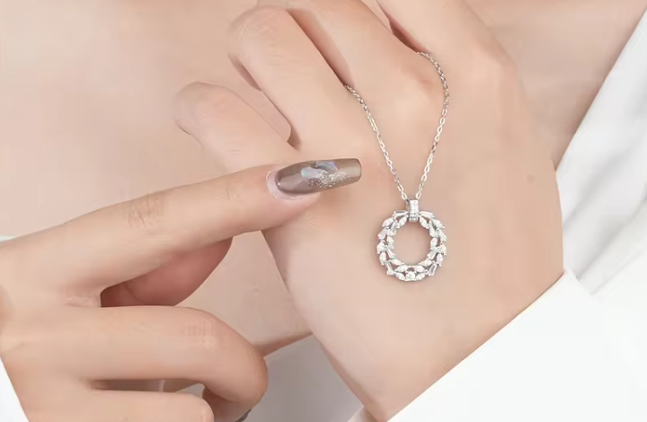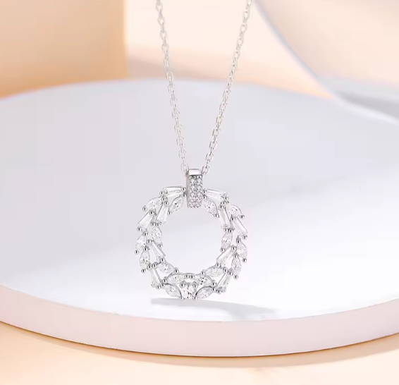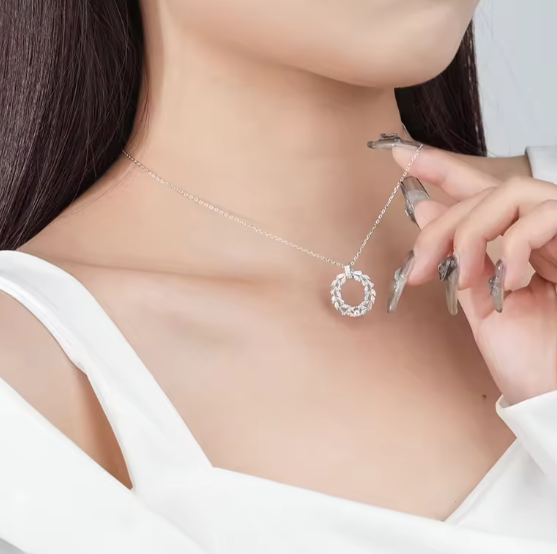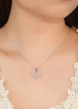 Lantisorul cu pandantiv Cununa/Cerc este realizat din Argint 925, placat cu rodiu.