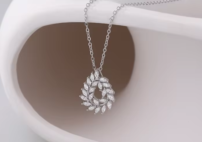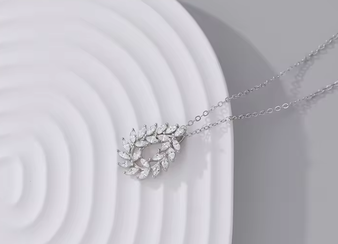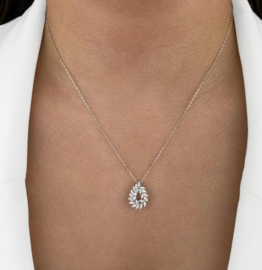 Lantisorul cu pandantiv Cununa/Frunza de maslin este realizat din Argint 925, placat cu rodiu.